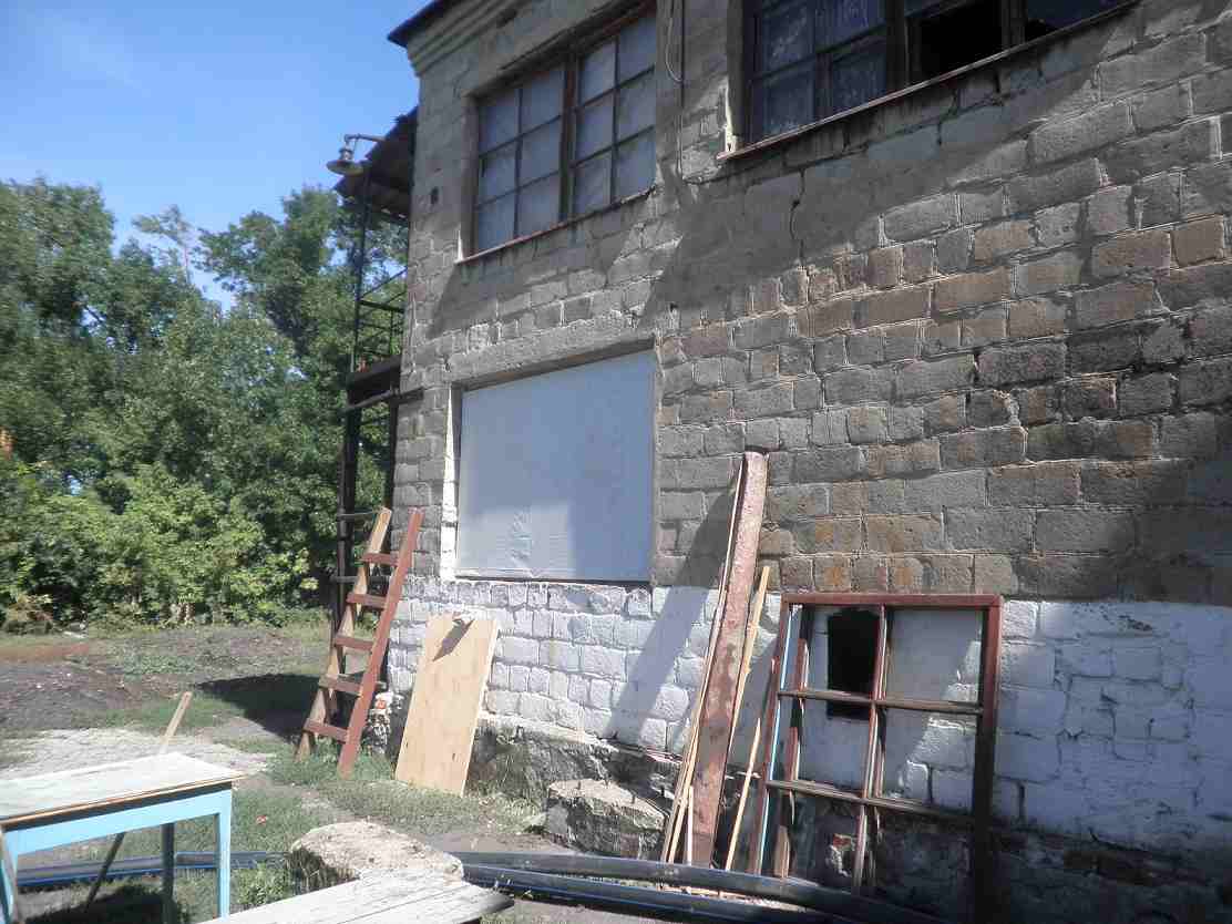 На прошлой неделе сотрудники очистных сооружений закрыли окна здания специальной пленкой и выполнили другие необходимые ремонтные работы. Все строительные материалы, в том числе фанера и тканый пластик, были предоставлены Международным Комитетом Красного Креста.