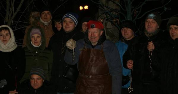 Виктор Бурдук, председатель гильдии кузнецов Донбасса: «Сегодня многие влюбленные во всем мире поздравляют друг друга, дарят валентинки. Кузнецы Донбасса в очередной раз решили подарить выкованные с любовью сердца всем романтикам, которые не поленились прийти сюда в это ранний час».
