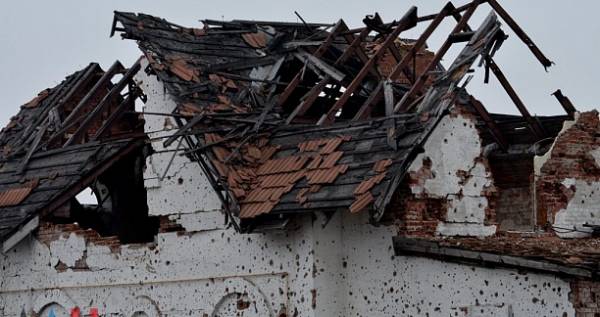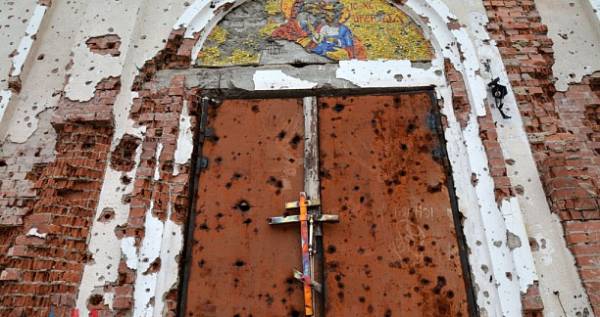В разрушенном обстрелами Свято-Иверском монастыре прошла праздничная литургия