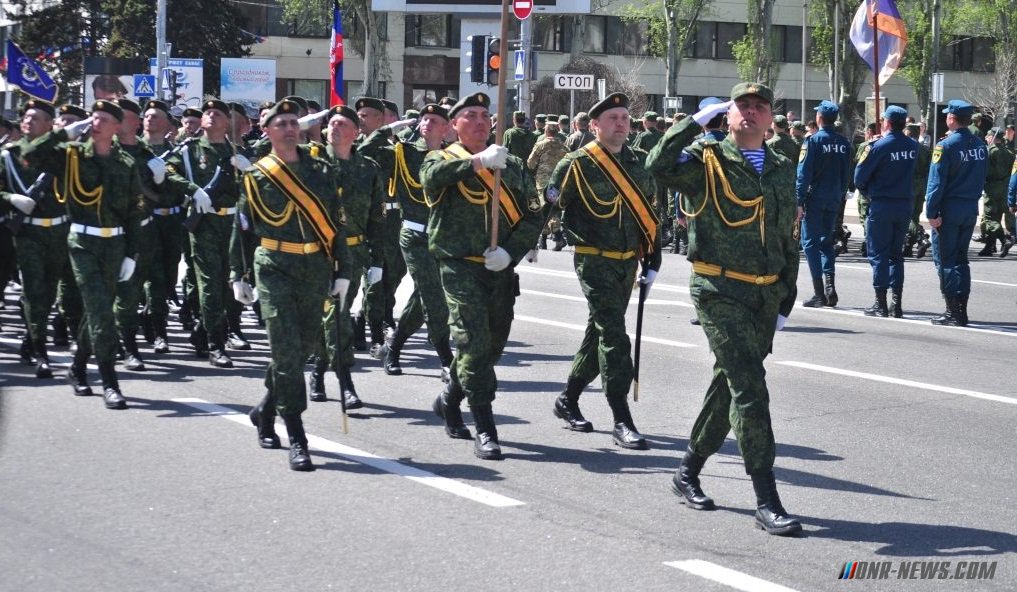 Репетиция была пешей, военная техника участия не принимала. По центру Донецка прошли 17 «коробок» по 64 человека в каждой.