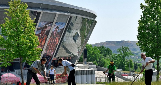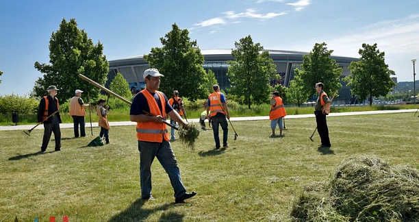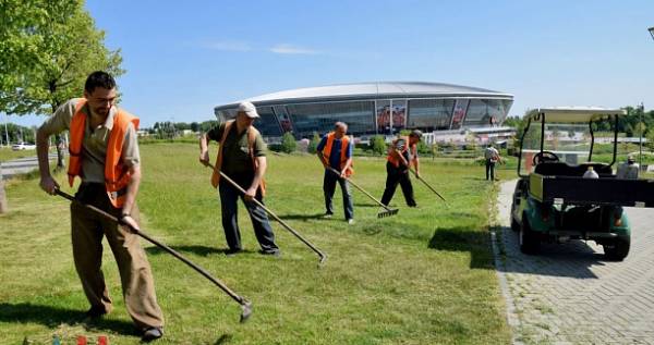 Благоустройство территории начато на «Донбасс Арене» и на прилегающей к стадиону территории. Здесь планируют покосить траву и полить газоны. Об этом сообщил руководитель управляющей компании, осуществляющей внешнее управление на стадионе «Донбасс Арена» Олег Ковальчук.