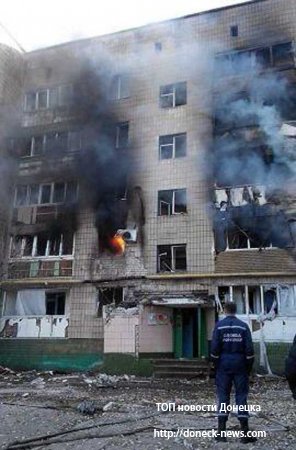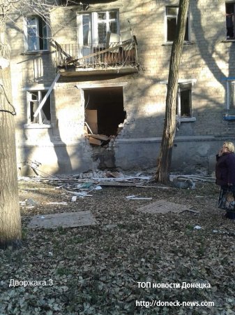 По причине попадания снаряда в квартире на третьем этаже девятиэтажного дома уничтожены два оконных и два дверных блока, часть межкомнатной перегородки, мебель, вещи хозяев. Дом расположен в Киевском районе.