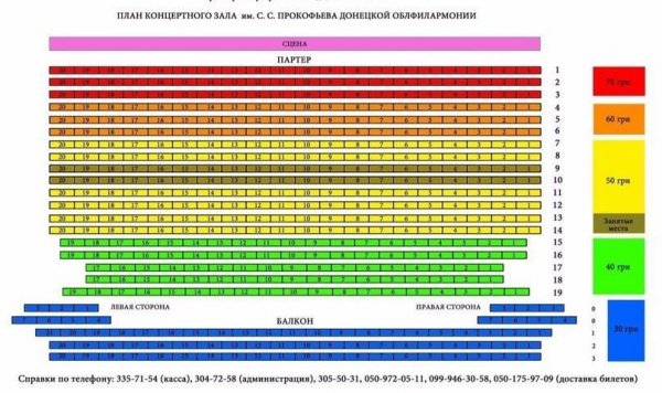 Билеты уже в кассе Филармонии! Стоимость от 30 до 70 грн. Раскладка зала прикреплена в виде фото.
