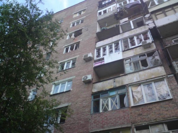 Обстрел поселка Октябрьский, район рынка, девятиэтажек
