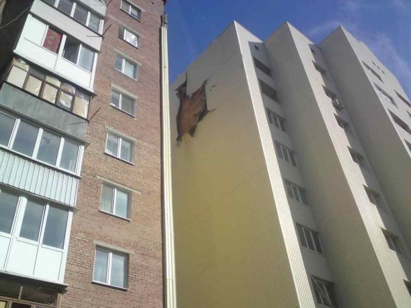 - пр. Колхозный, 1а - прямые попадание, 6, 7, 8 и 9 этажи получили разрушения разной степени, 2 человека ранены