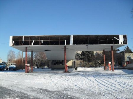 - Жилплощадка - осколками повреждено здание и остекление почты